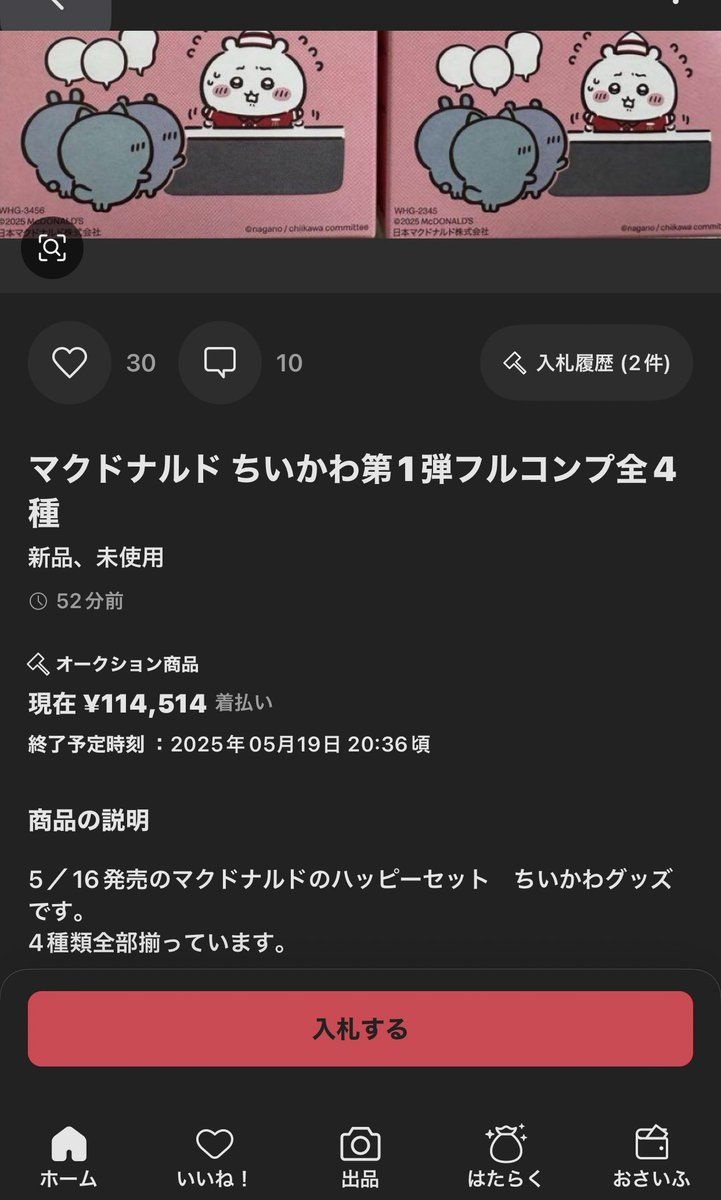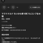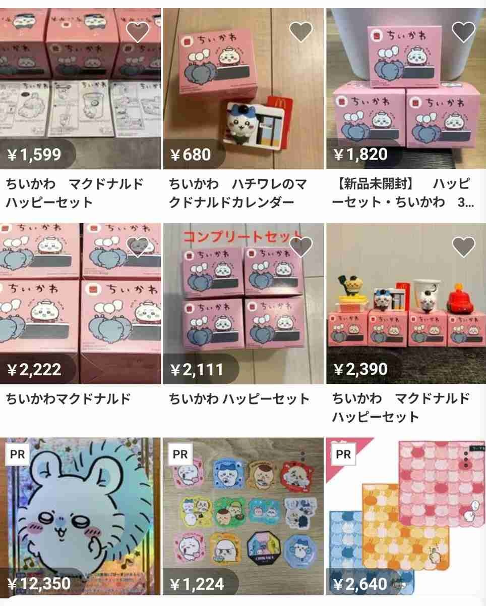 今回のちいかわハッピーセットは発売日の瞬間から何回か見てたけど大した高額にはなってません。おそらくマクドナルドが転売しても儲からないように十分な量を用意したためです。