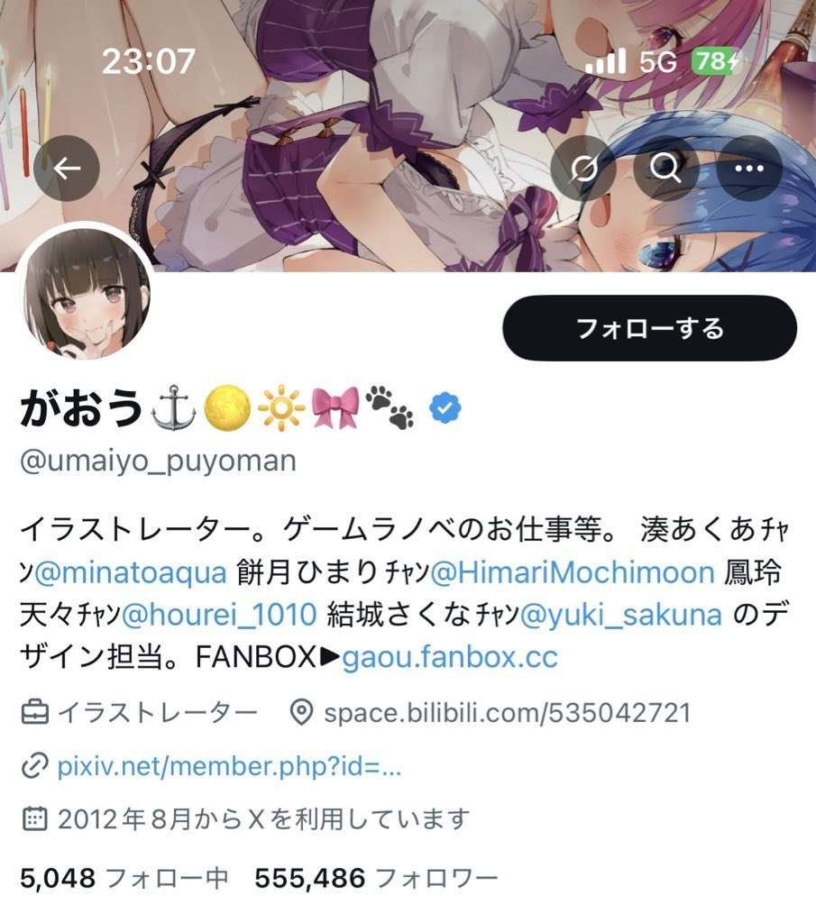 Vtuber「湊あくあ」などの絵師「がおう」(40歳)が14歳と淫行して終わる