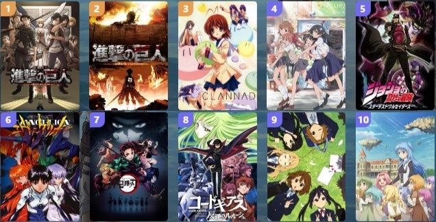 【画像】中国で人気のアニメTOP10がコチラwww