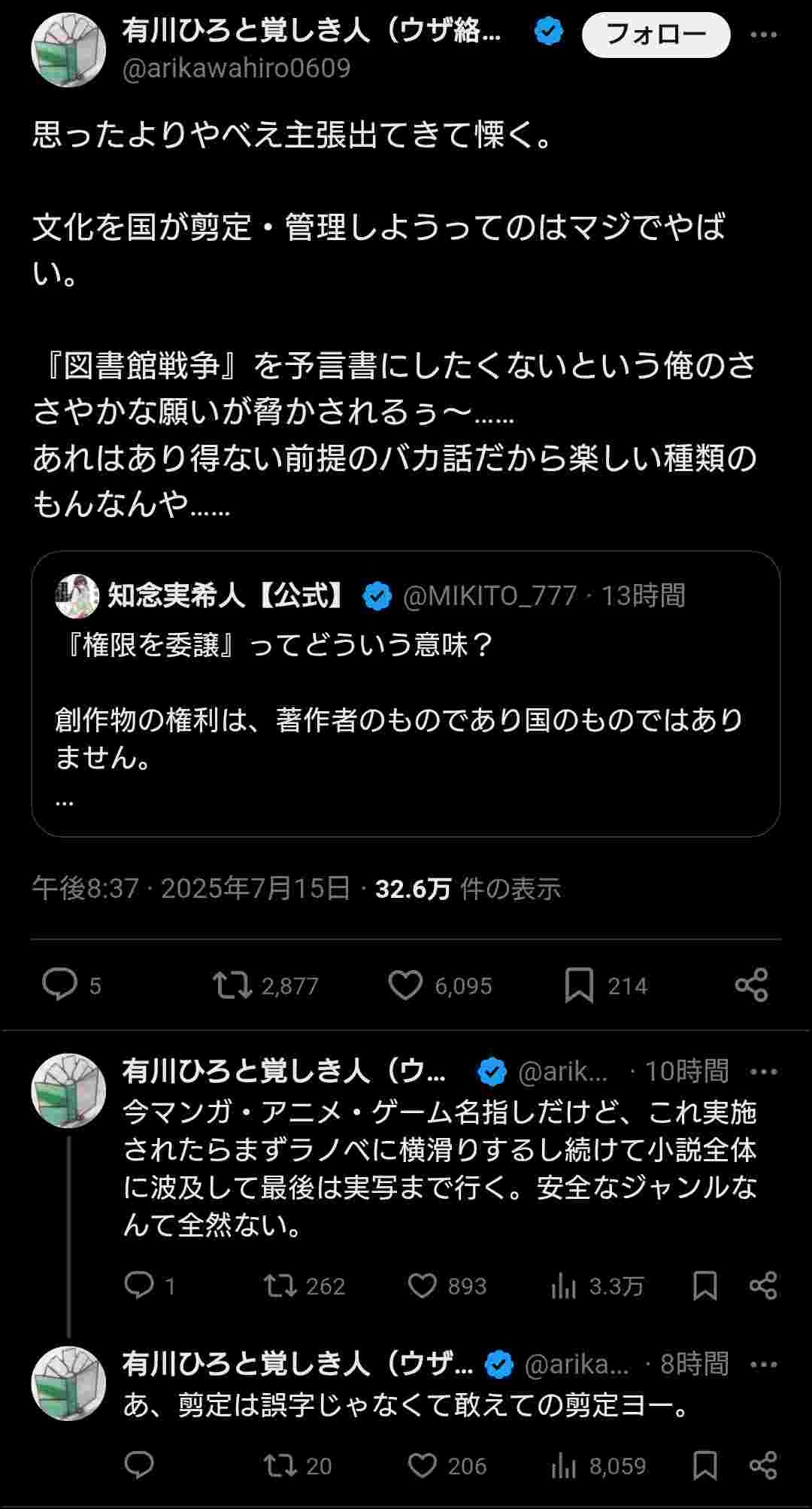 https://twitter.com/MIKITO_777/status/1945042845468905867twitter.comhttps://twitter.com/arikawahiro0609/status/1945085392434421843twitter.comパヨク作家