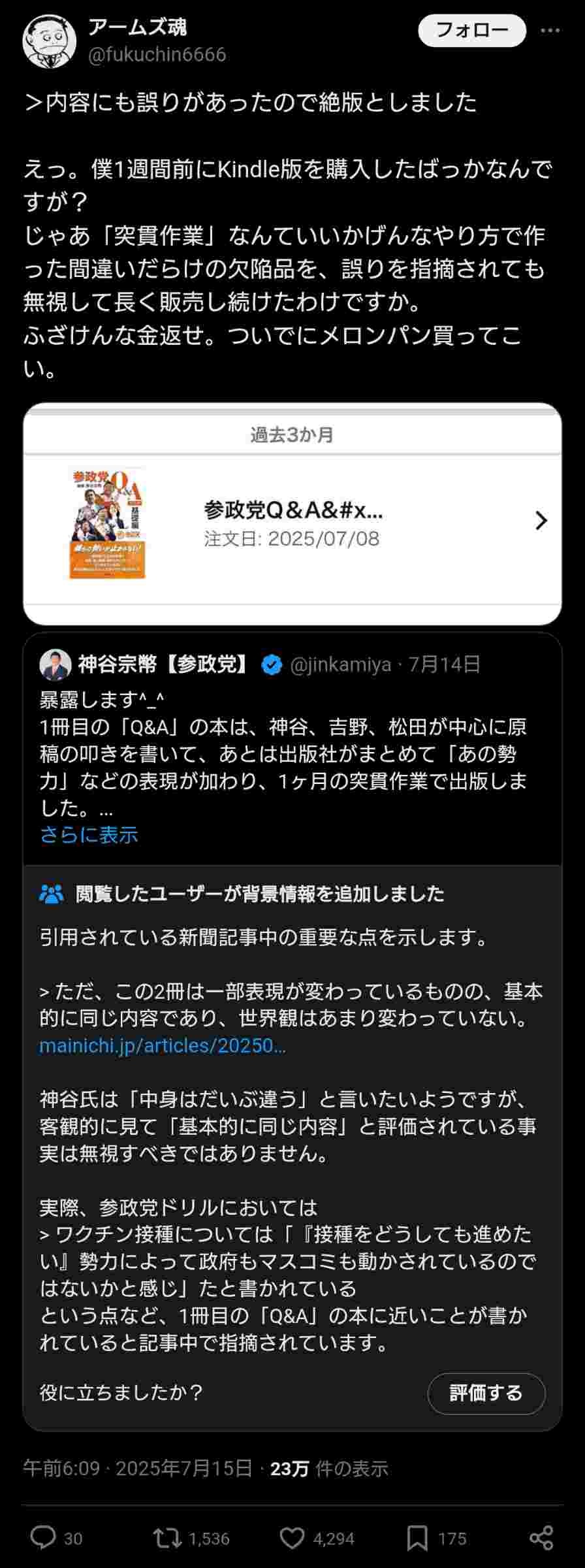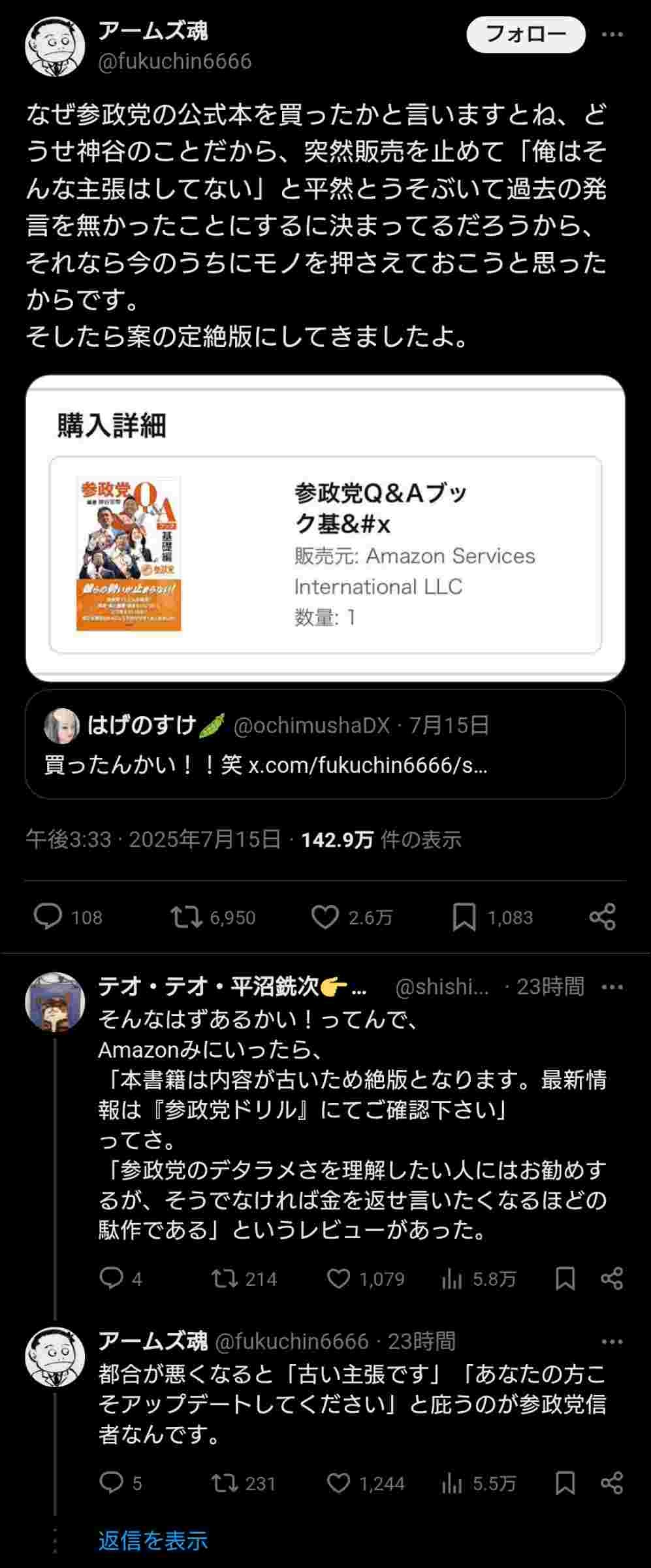 https://twitter.com/arai_h_official/status/1944820805743075658twitter.comhttps://twitter.com/tamakinozomu/status/1945117886458044805twitter.com参政党が国民の分断を防いだ