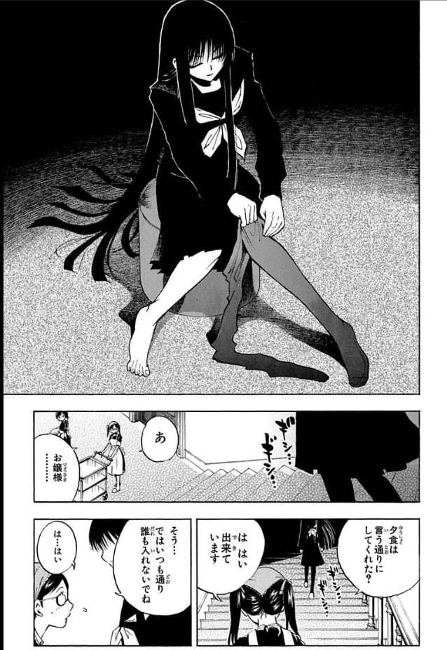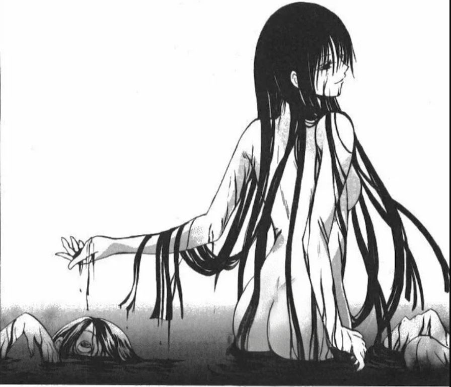 鬼纏われた者は他にも数人いるが、全員着衣状態だったのに対し彼女のみ全裸にされている