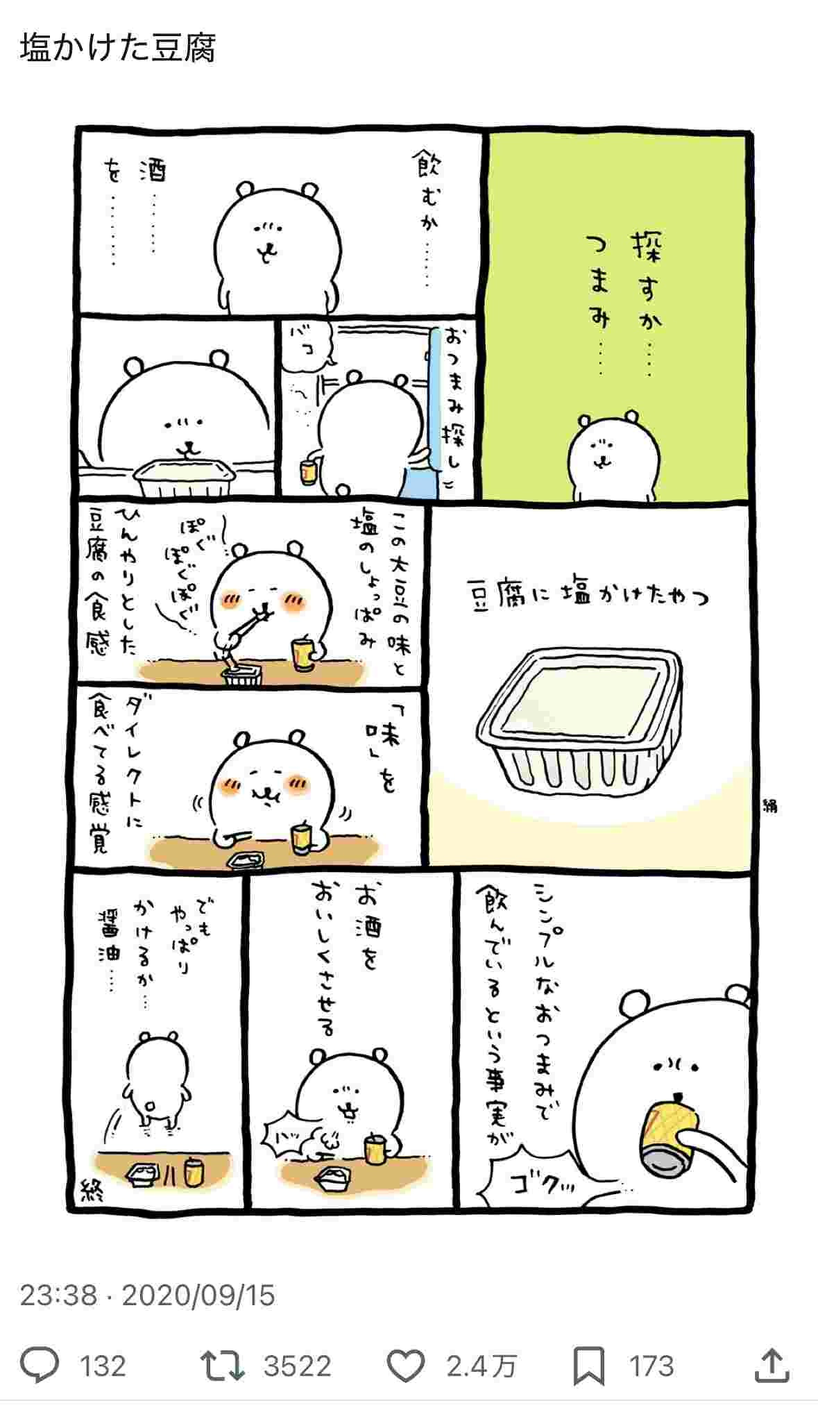 ちいかわのナガノ、「塩をかけた豆腐」を食べる