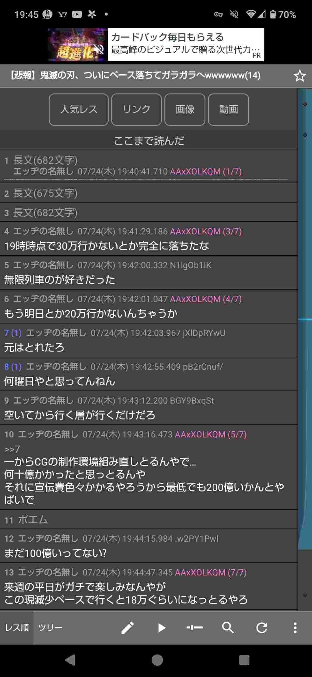 - 無限列車も木曜日が一番客入り落ち込んでるしそれでもなお列車よりペース上やから掌返す準備しといたほうがええで