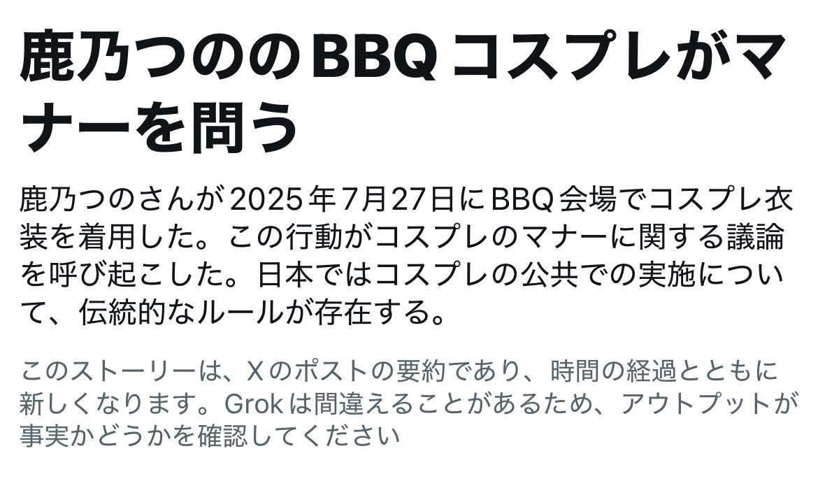 コスプレBBQはダメな理由って何? - 102 : 2025/07/28(月) 18:42:43.438 ID:kgRen33Vj