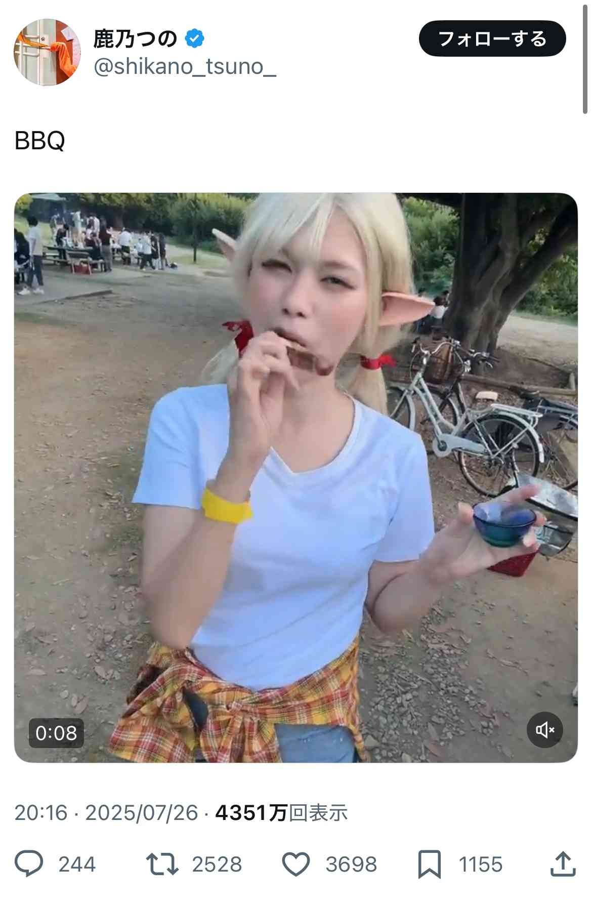 私的なバーベキューでコスプレ動画投稿くらいええんじゃないのって思う - 122 : 2025/07/28(月) 18:44:54.278 ID:PWFatRWED