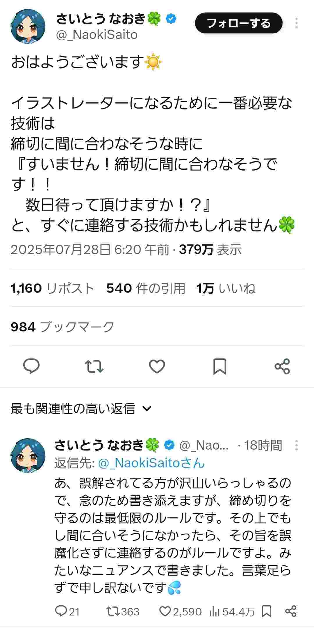 - イラストレーター続けるのに必要なのはマジで報連相の徹底と筆の早さやけど