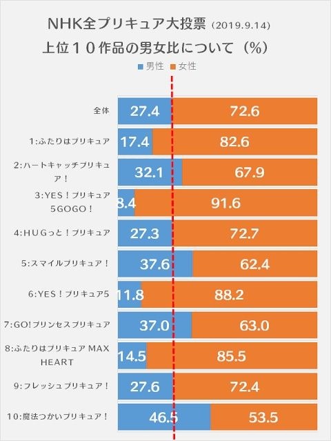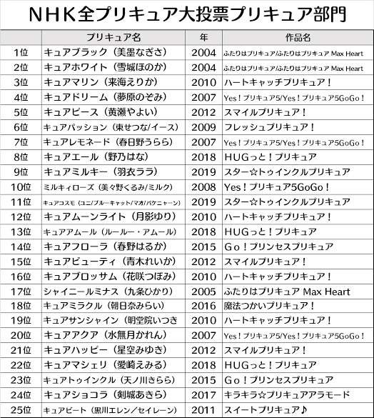 子供がテレ朝でもないNHKの人気投票に参加する訳ないから単なるプリキュアおじさん達の投票やんけ