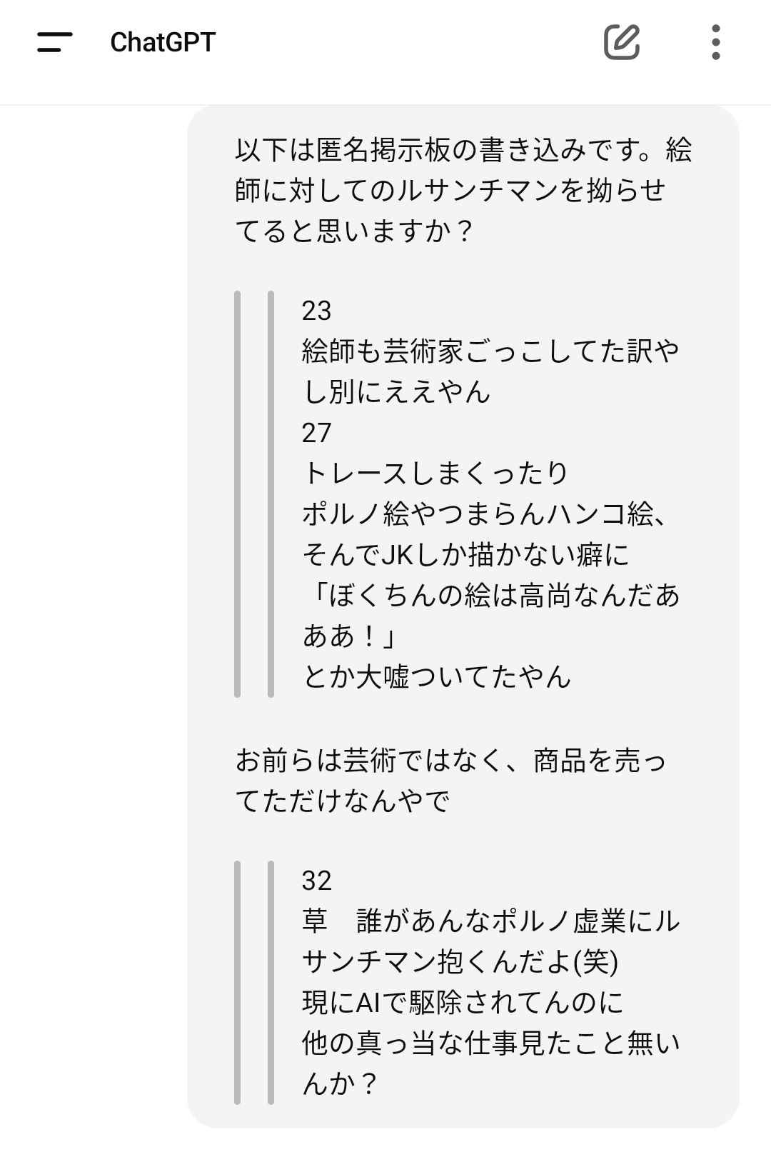 底辺絵師がレスバでムカついてAIに頼って煽りスレ立てとか悲しすぎるやろ