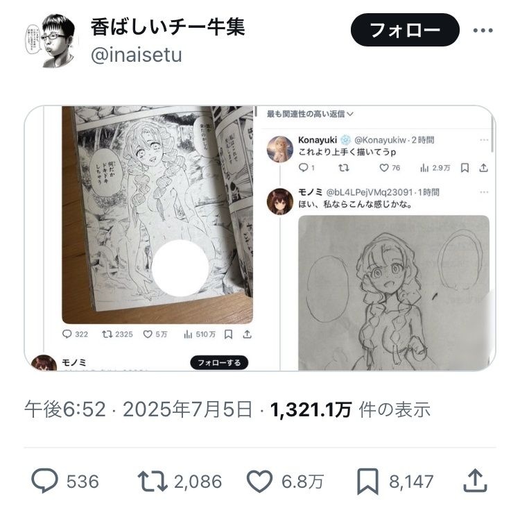 一枚絵でも扉絵でもない1コマ切り抜いて自分の方が絵上手いとかアホか - 82 : 2025/08/13(水) 11:46:19.516 ID:RFQvMGckw