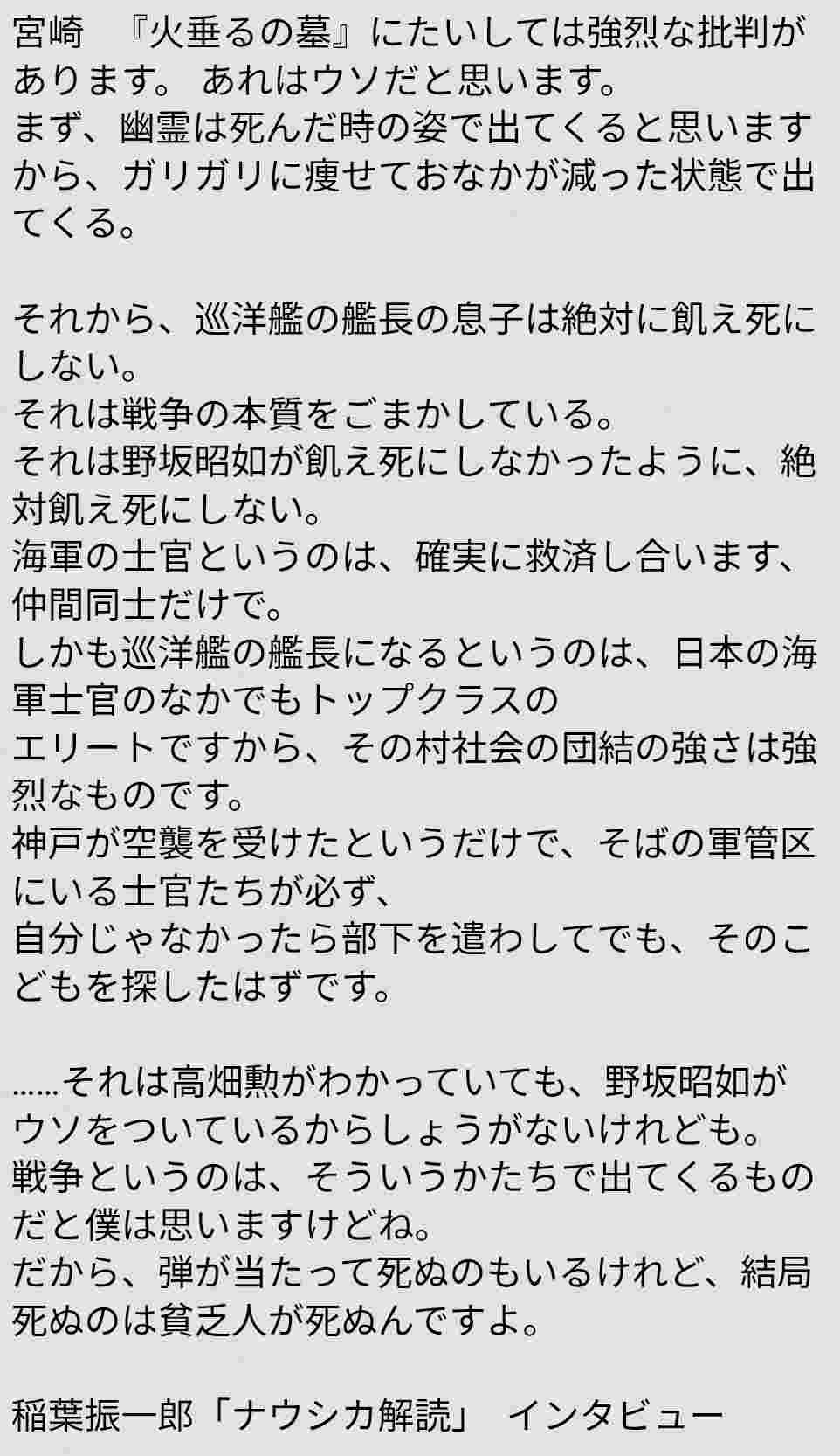 - まあパヤオも確実にイカれてる思想だけど火垂るの墓に対してはわりとまともに考えてると思う