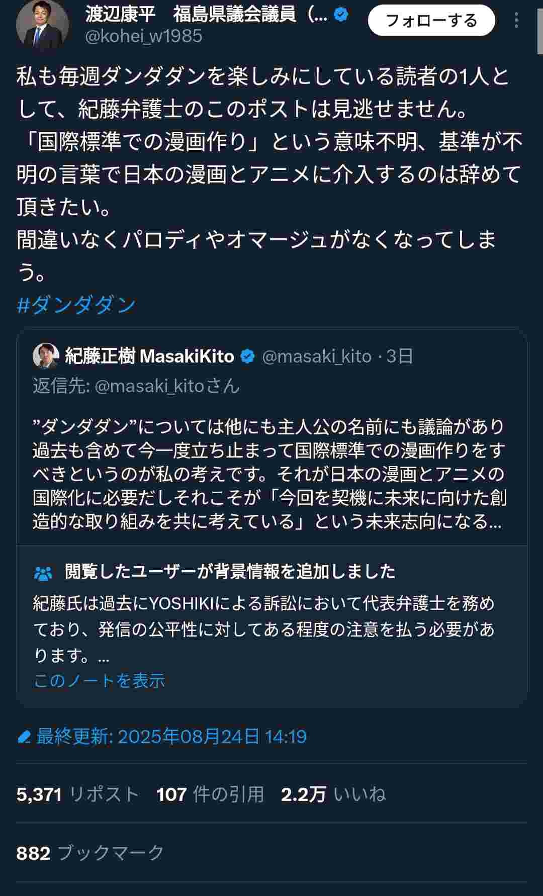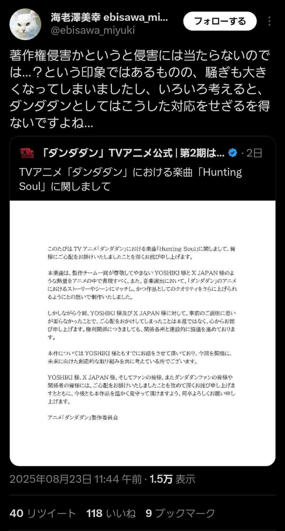エッヂ公認紀藤弁護士「ダンダダンはYOSHIKIの何らかの権利を侵害している!」「国際基準で漫画作れよ!」→大炎上