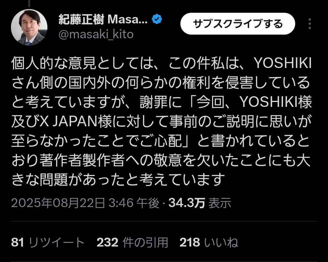 - この件に限らずサタンはYOSHIKI側にバイアス掛かりすぎててなんかな