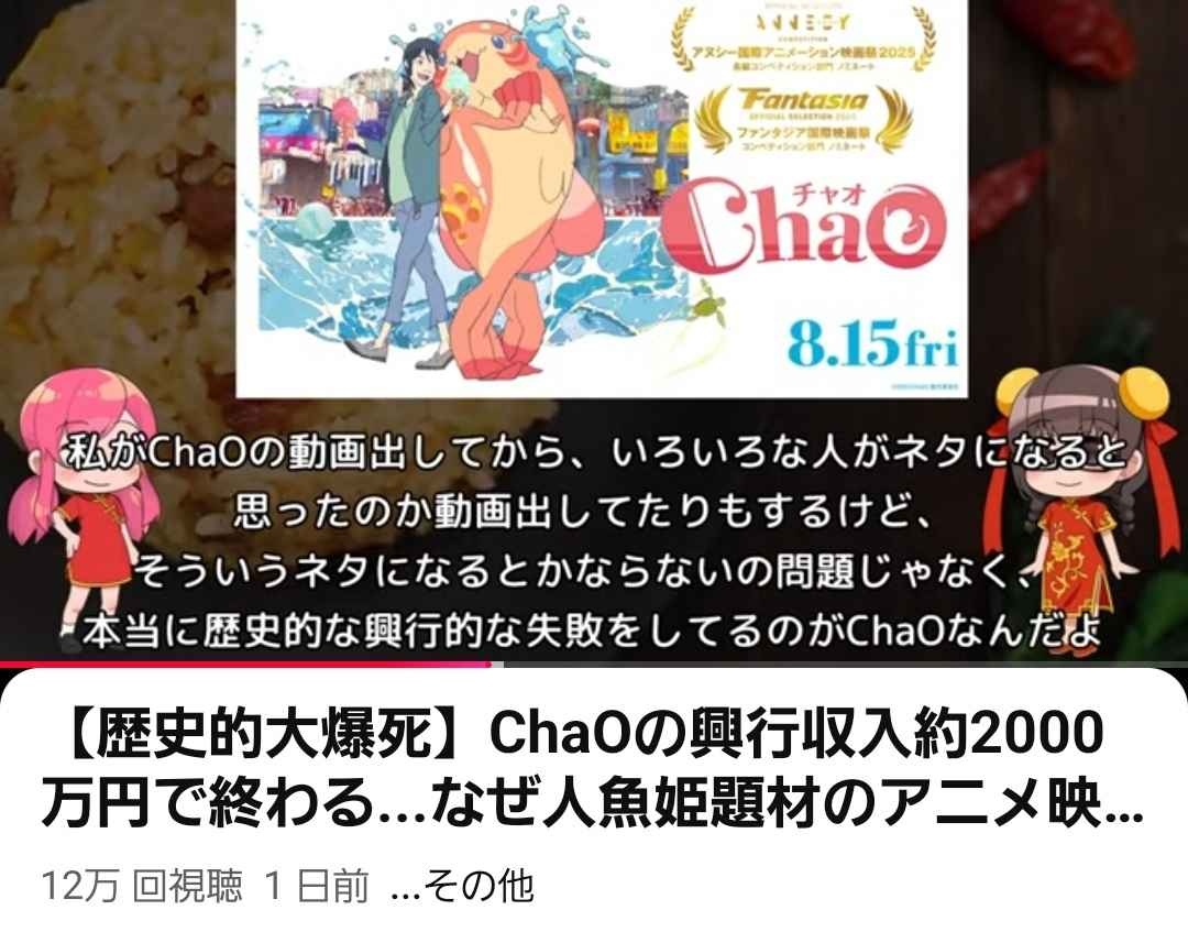 - アニメ系YouTuber「私がchaoの爆死煽り動画を上げたら他の人達がこぞって動画をアップしました」