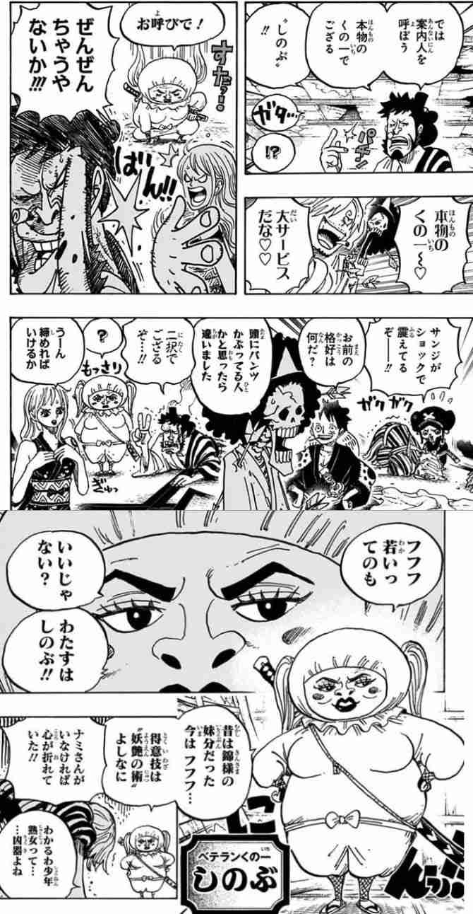 - ナミと身体が入れ替わった際嫌がってるナミを無視し執拗に身体を観ようとする