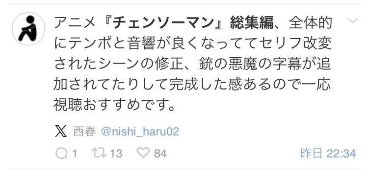 アニメチェンソーマン総集編、作画と音響と演出が全て修正され不評要素が改善されるwww