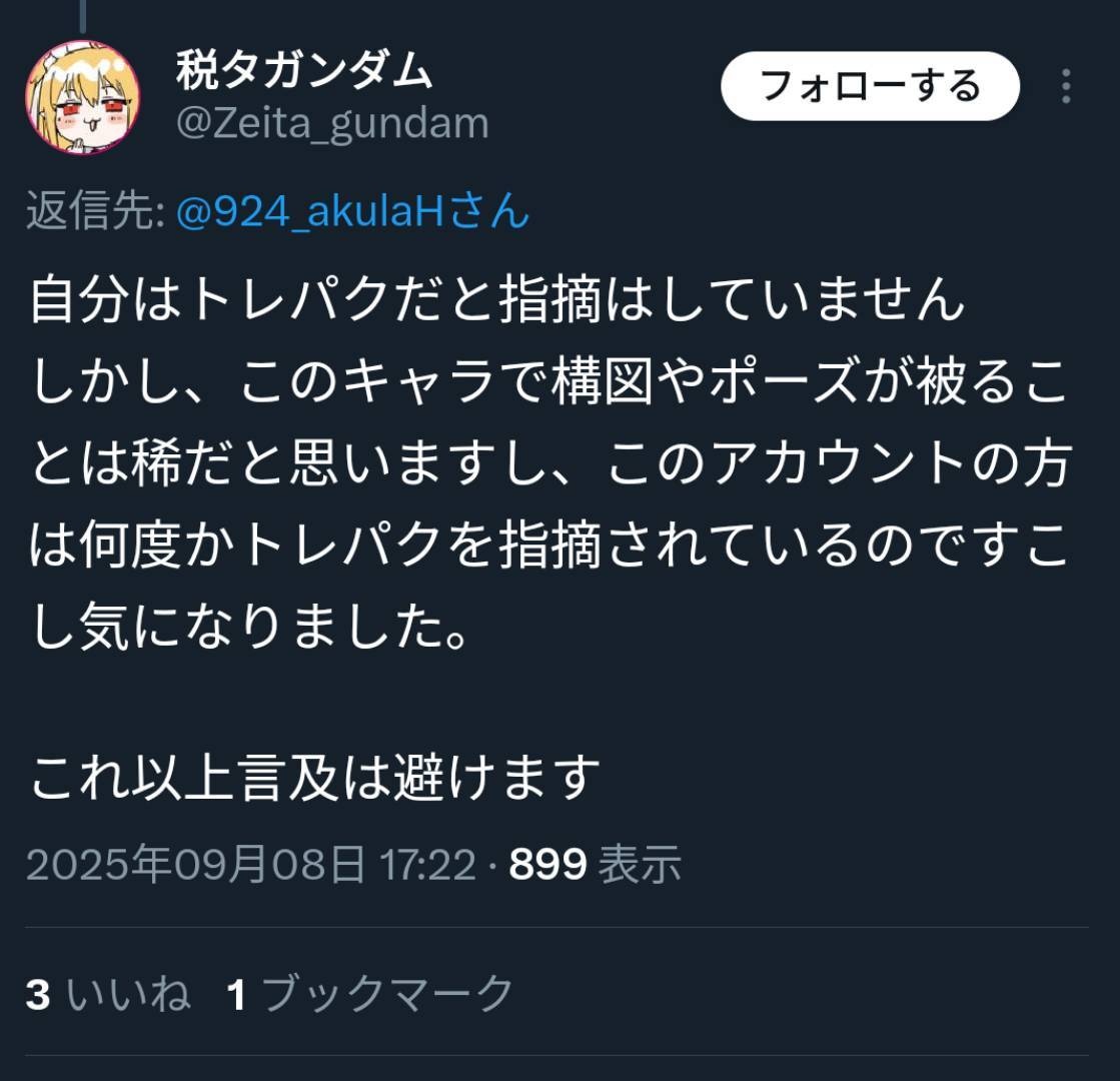 ↑同じキャラで同じような構図やポーズをとってるところから絵師がファンネル飛ばすもトレパクではないと叩かれる