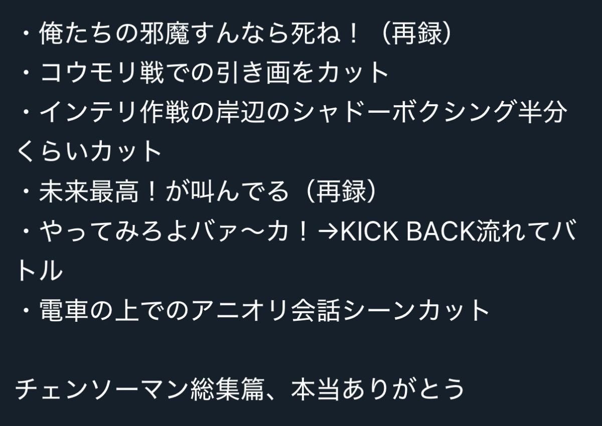 アニメチェンソーマンの総集編、”良さ”がすべて消されたと話題にwww