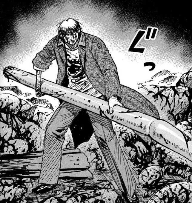 彼岸島の明、久々に丸太っぽいものを武器にする