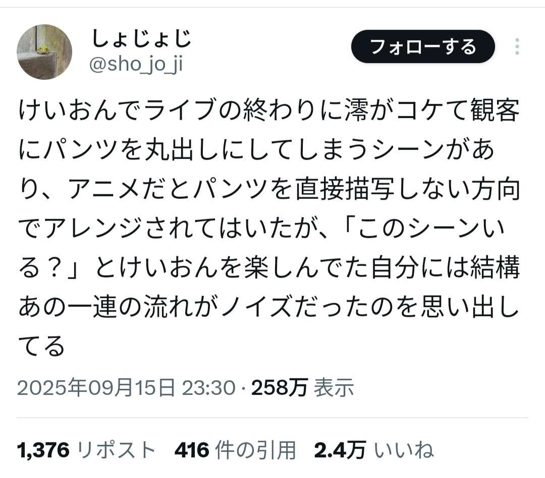 けいおんに特殊性癖が押し掛けてたのはなんでだったんやろ