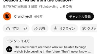 エッヂ 覇権アニメ「俺だけレベルアップな件」のバトルシーンが3日で500万再生www