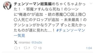 エッヂ アニメチェンソーマン総集編、作画と音響と演出が全て修正され不評要素が改善されるwww