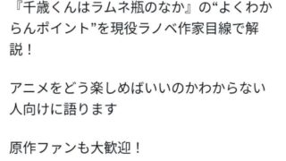 エッヂ 今期覇権アニメ『千歳くんはラムネ瓶の中』、異例の「"楽しみ方"解説」が行われるwww