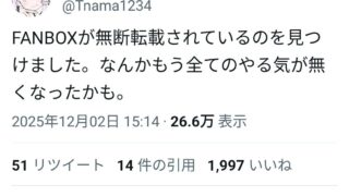 エッヂ 超大物絵師「FANBOXが無断転載されているのを見つけました。なんかもう全てのやる気が無くなったかも。」