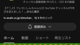 エッヂ YouTubeのクレヨンしんちゃん公式、まもなく登録者100万人になる模様